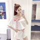夏新款韩版网纱拼接喇叭袖上衣+高腰阔腿短裤时尚休闲两件套装女