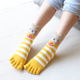 森女系春秋五指袜 女生纯棉彩色条纹分脚趾头袜 素雅运动耐磨袜子