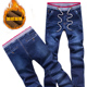 秋冬款男士牛仔裤男加绒小脚裤青少年长裤子韩版青年修身保暖男裤