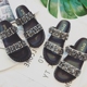 2017夏季新款双排扣带凉拖鞋复古女鞋水钻厚底外穿松糕沙滩休闲鞋