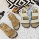韩国情侣简约黑色原宿风罗马拖鞋学生韩版平底双杠一字拖凉鞋女夏