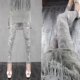 2017春新款时尚个性裂纹浅灰色打底裤亚光显瘦外穿打底裤女裤潮裤