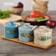 youcci悠瓷 手绘鱼纹陶瓷调味罐三件套带盖勺 家用调味盒厨房用具
