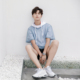 CE定制 日系个性圆领男士五分袖潮男拼接T恤半袖短袖打底衫夏季