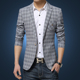 2015秋季新款男士西服 韩版时尚修身格子休闲西装男小西服潮外套