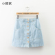 Q101小颖家 欧洲单春装女士高腰单排扣水洗磨白浅色牛仔半身裙