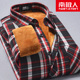 南极人秋冬男士保暖衬衫加绒加厚长袖格子韩版修身男装衬衣