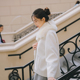 mashy春装复古气质v领白色碎花衬衫女中长袖短款宽松小清新上衣潮
