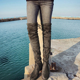 MASHY/十元诗苑 过膝长靴女靴子鹿皮高筒靴 瘦腿靴子