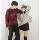 Mashy秋冬圆领刺绣蝙蝠袖情侣卫衣女套头加绒短外套