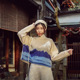 MASHY/十元诗苑宽松长袖条纹情侣毛衣秋冬学生中长款显瘦开衫外套