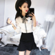 2017春季新款甜美拼色长袖蝴蝶结衬衣鱼尾半身裙两件套套装女装潮