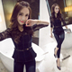 2017春夏新款韩版女装时尚夜店性感V领蕾丝衫上衣短裤套装送裹胸