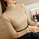 2016秋冬新款半高领宽条纹打底毛衣女韩版修身显瘦高领纯色打底衫