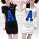2017夏装新款女装圆领短袖中长款流苏铆钉字母T恤连衣裙大码包邮