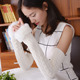 秋冬季韩版加长款手套半指加厚毛线女生手套 可爱保暖手臂套袖套