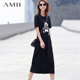 Amii[极简主义]2016夏新圆领开衩短袖金属联扣大码连衣裙11681324
