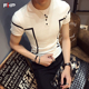 夏季新款圆领印花t恤男短袖韩版修身夜店打底衫青年潮流半袖体恤