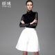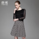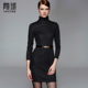 颜域2017春装新款欧美优雅时尚显瘦收腰波点长袖高领打底连衣裙