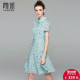 颜域品牌女装2017夏季新款文艺双层娃娃领短袖碎花A型中款连衣裙