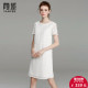 颜域品牌女装2017夏季新款显瘦娃娃领蝴蝶结系带蕾丝短袖连衣裙