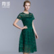 颜域2017夏新款欧美时尚优雅绣花蕾丝连衣裙中裙修身礼服收腰裙