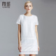 颜域品牌女装2017夏季新款欧美时尚宽松大码女装拼接短袖连衣裙女