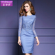 菲梦伊2017春夏新款网纱刺绣连衣裙女中长修身气质名媛一步裙7569