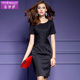 菲梦伊针织刺绣连衣裙秋季新品2016女装V领七分袖修身A字裙黑8796