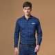 利堡男装秋季新品修身格子印花方领长袖衬衫青少年时尚休闲衬衣潮