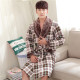 天天特价格子冬季针织纯棉三层夹棉男士加厚加长睡袍中年冬天男款