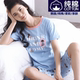 全棉睡衣女夏季短袖短裤纯棉韩版套装宽松大码七分裤休闲家居服