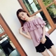 2017夏季韩版宽松显瘦蝴蝶结短袖真丝雪纺衫气质荷叶边一字领上衣