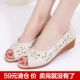 2017春夏新款真皮鱼嘴女凉鞋方跟网纱中跟镂空凉鞋中年女鞋妈妈鞋