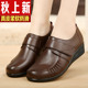 中年春鞋妈妈鞋真皮鞋软底中老年女鞋深口加绒单鞋休闲坡跟运动秋