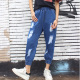 夏欧美潮胖MM宽松大码BF松紧腰高腰破洞乞丐牛仔裤九分垮裤女韩版