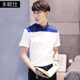 卡欧仕夏装休闲短袖衬衫男 青少年韩版男寸衣 修身简洁拼接衬衣潮