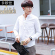 卡欧仕春夏新款韩版男士小立领衬衣青年修身亚麻纯白色长袖衬衫潮