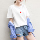 韩版宽松bf爱心短袖t恤女学生圆领体恤纯黑白粉色休闲简约上衣夏