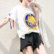 韩版中长款百搭宽松短袖白t恤女学生个性bf风破洞卡通印花大体恤