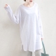 王妃家韩版新款简约开叉纯白色棉宽松大码中长款长袖圆领打底t恤
