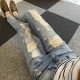 2017春季新款破洞乞丐牛仔裤女九分裤宽松bf大码显瘦图案哈伦垮裤