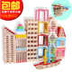 150片儿童建筑彩色原木色创意百变长条积木层层叠高益智拼搭玩具