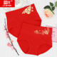 棉质本命年大红色纯棉中腰三角裤鸡年 全棉内裤女士 蕾丝大码内裤