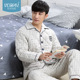 睡衣男士长袖纯棉青年春秋季大码家居服套装秋季中年男装全棉睡衣