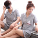 优黛悦情侣睡衣夏季纯棉女短袖韩版休闲青年薄款开衫男家居服套装