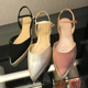 欧美2017新款尖头浅口包头凉鞋女夏中空铆钉一字扣后空平底单鞋
