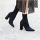 欧美新款尖头粗跟高跟短筒弹力靴黑色弹力短靴及踝靴裸靴高跟鞋冬