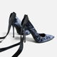 欧美春季新款时尚天鹅丝绒尖头浅口系带舒适高跟鞋绑带细跟单鞋女