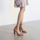 欧美呛口小辣椒同款蛇形环绕露趾粗跟中跟凉鞋水钻鞋闪钻婚鞋女潮